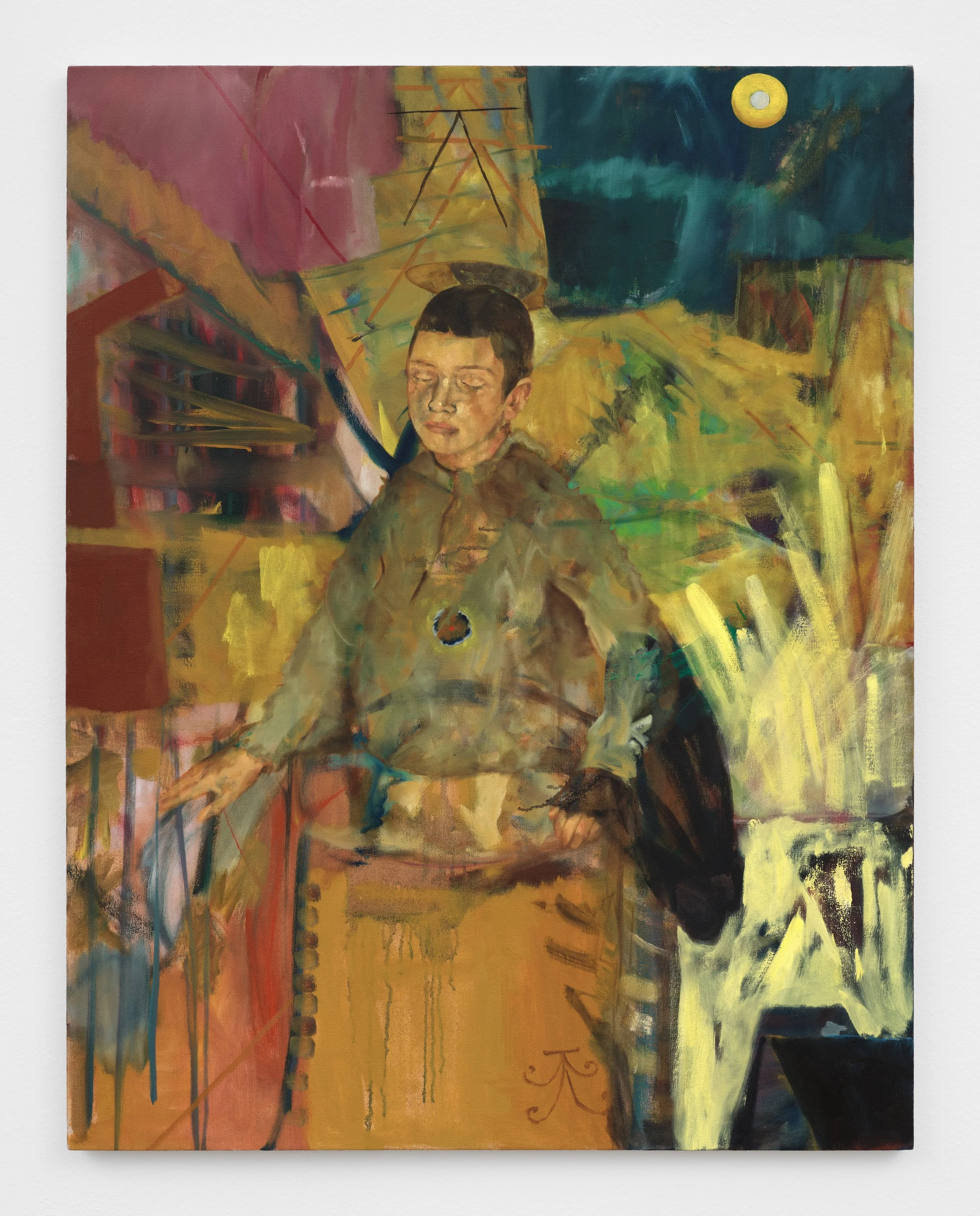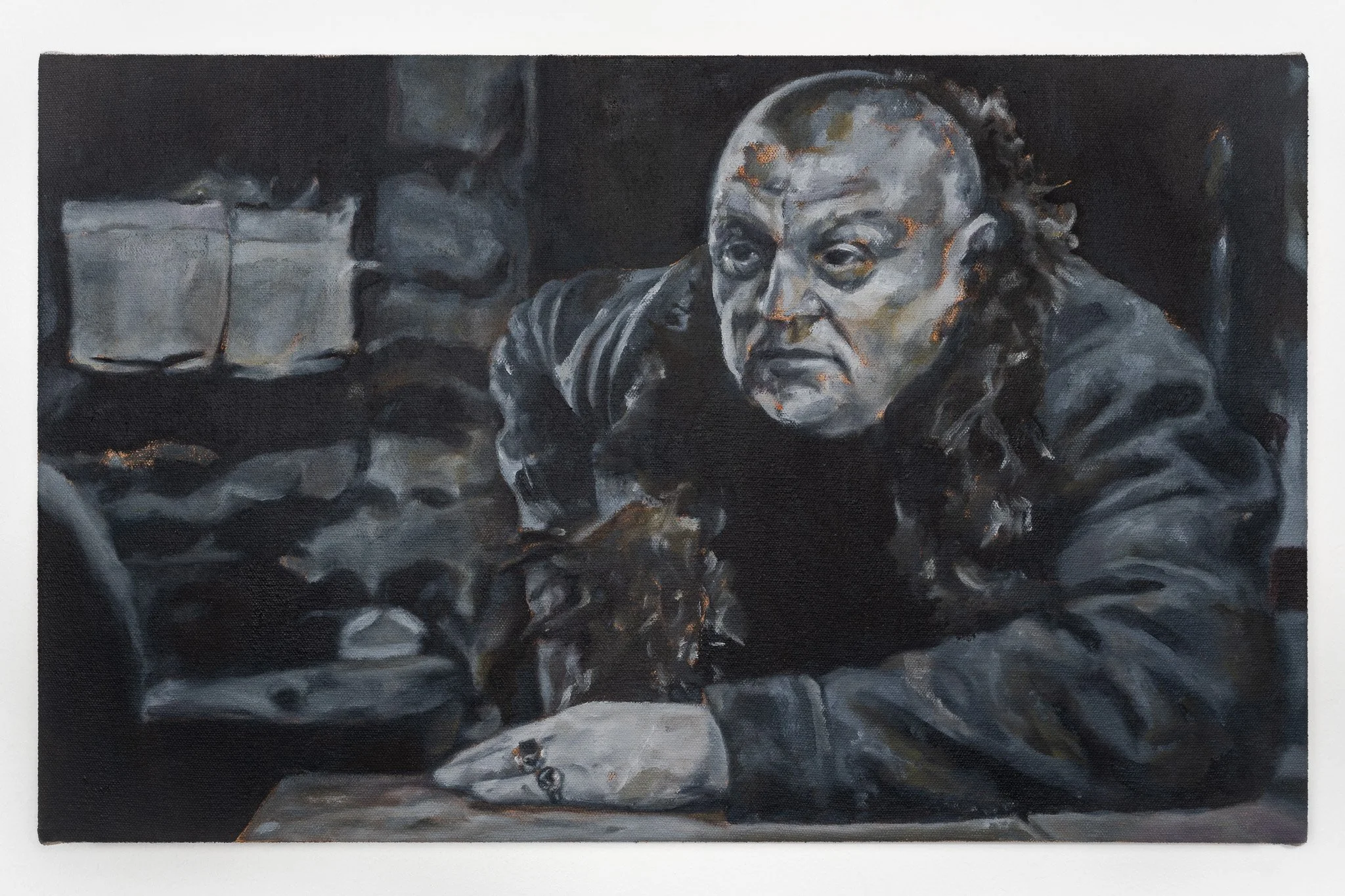 The artist cultivates the conditions of breakthrough syntax through the group dynamics of painting, language, context, political immediacy, and personal memory. The strong societal forces of alienation and assimilation prompt the artist toward situations that can renew a sense of relation, even if conceptual or abstract in nature. Representational, often figurative oil painting provides a body and gravity for his ideas on detachment, doubt, and risk to form. In his 2021 epic experimental novel, Wenzel Beckenbauer, each paragraph corresponds to one day in the mental texture of its protagonist; the artist’s practice as a whole mobilizes system and improvisation to capture evasive shades of awareness. A construct emerges out of his iconoclastic arrangements that imagines hypothetical revision to habits of thinking.